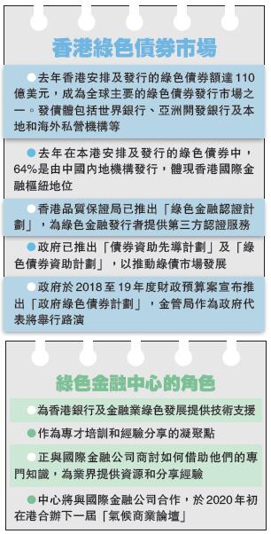另外,金管局會在基建融資促進辦公室(IFFO)下成立綠色金融中心,為香港銀行及金融業綠色發展提供技術支援及經驗分享平台。同時,綠色金融中心將於2020年初與國際金融公司在香港合辦下一屆「氣候商業論壇」。