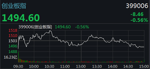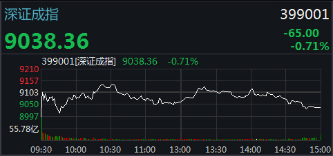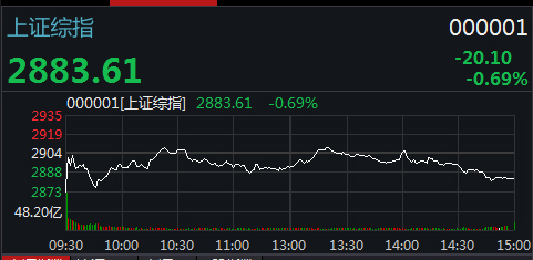 截至收盘,沪指报2883.61点,跌幅0.69%,成交额2012.23亿;深成指报9038.36点,跌幅0.71%,成交额2543.18亿;创业板指报1494.60点,跌幅0.56%,成交额755.53亿。