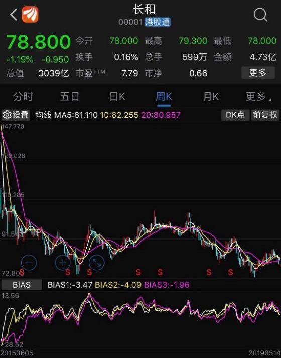 长和2018年纯利同比升11%至390亿元,是自2013年以来首次录双位数增长。但从长和的走势来看,近两年长和已经从104港元左右跌到最低72.8港元,最大跌幅已经超过了25%。