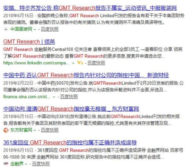 GMT Research历史上黑过的公司主要集中在医药和体育品牌两大行业。中国中药、国药控股皆被其唱空过,而安踏、特步、361度也曾遭其指控。
