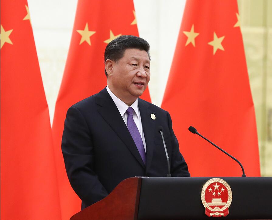 5月14日,国家主席习近平和夫人彭丽媛在北京人民大会堂举行宴会,欢迎出席亚洲文明对话大会的外方领导人夫妇及嘉宾。这是习近平在宴会上发表致辞。 新华社