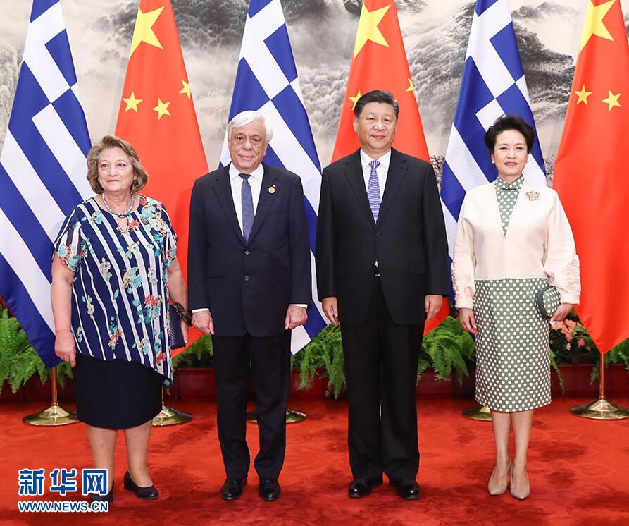 5月14日,国家主席习近平在北京人民大会堂同希腊总统帕夫洛普洛斯举行会谈。这是习近平和夫人彭丽媛同帕夫洛普洛斯夫妇合影。 新华社