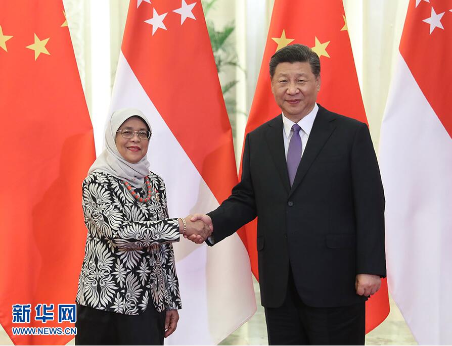 新华社北京5月14日电(记者白洁、谢昊)国家主席习近平14日在人民大会堂会见新加坡总统哈莉玛。