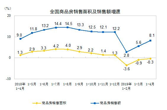 国家统计局数据显示,1—4月份,商品房销售面积42085万平方米,同比下降0.3%,降幅比1—3月份收窄0.6个百分点。目前已出现了连续3个月负增长的现象,但是跌幅没有扩大。