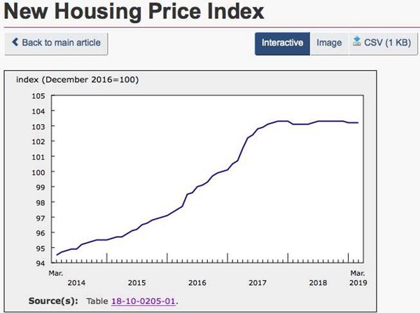 根据加拿大统计局的数据,新房价格指数在过去5年里经历了持续的上升后,于2018年1月开始回调,并进入了相对平滑期。