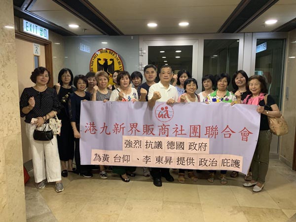 另外,港九新界販商社團聯合會昨午也派代表到德國駐港領事館示威,抗議德方干預香港事務。