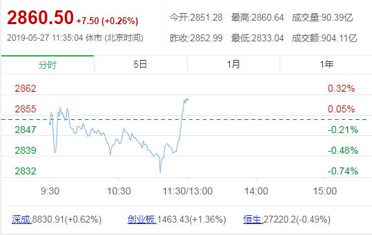 截至午间收盘:沪指涨0.26%,报2860.50点;深证成指涨0.62%,报8830.91点;创业板指数涨1.36%,报1463.44点。
