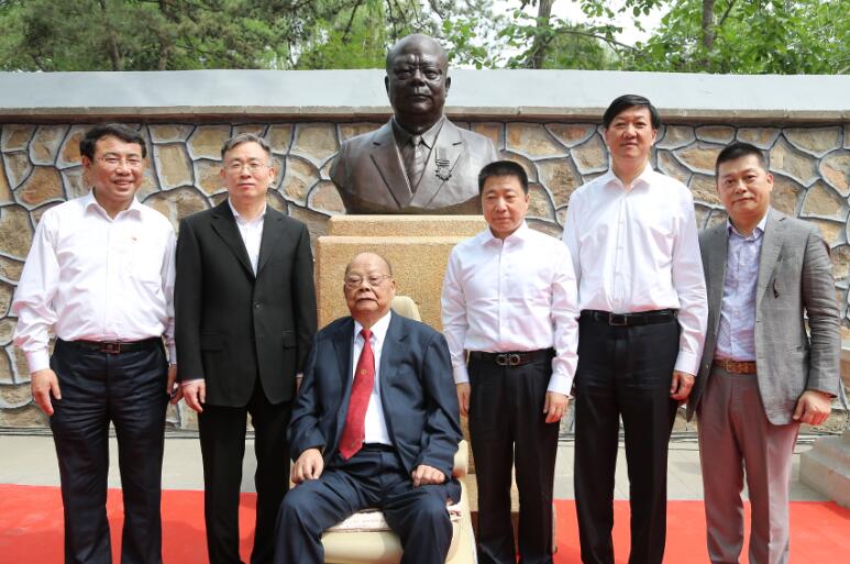 左起:北京市海淀區委書記于軍、國務院港澳辦副主任宋哲、曾憲梓博士、航天英雄楊利偉、國家體育總局副局長高志丹、全國政協委員、金利來集團主席曾智明在圓明園曾憲梓先生雕像揭幕儀式上合影。