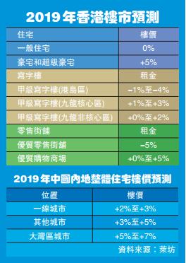 商廈方面,萊坊香港區商業部高級董事劉柏汶則認為,中美貿易戰導致不少租戶採取觀望態度,更多租戶想要搬遷到非核心區,削弱寫字樓租賃需求,寫字樓市場因此轉弱。她預期,港島區寫字樓租金將微跌1%至4%,九龍區租金升幅放緩,微升1%至3%,九龍非核心區增幅有可能為零。