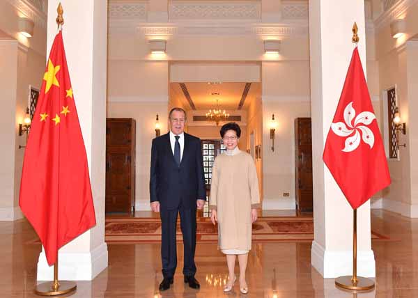 今年2月26日,特首林鄭月娥與俄羅斯外交部部長謝爾蓋·拉夫羅夫在禮賓府會面,並向他介紹香港的最新發展及大灣區規劃綱要。 資料圖片