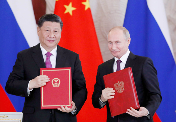 綜合內地與海外媒體報道,中俄兩國元首決定將兩國關係提升為「新時代中俄全面戰略協作夥伴關係」。當地時間昨天下午,習近平與普京簽署了《中華人民共和國和俄羅斯聯邦關於發展新時代全面戰略協作夥伴關係的聯合聲明》和《中華人民共和國和俄羅斯聯邦關於加強當代全球戰略穩定的聯合聲明》。