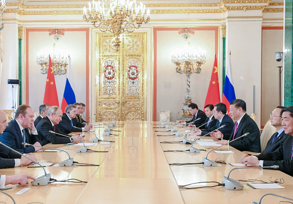 6月5日,国家主席习近平在莫斯科克里姆林宫同俄罗斯总统普京会谈。新华社