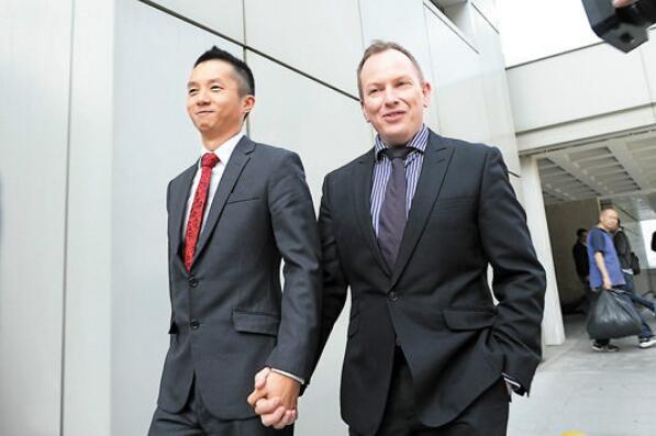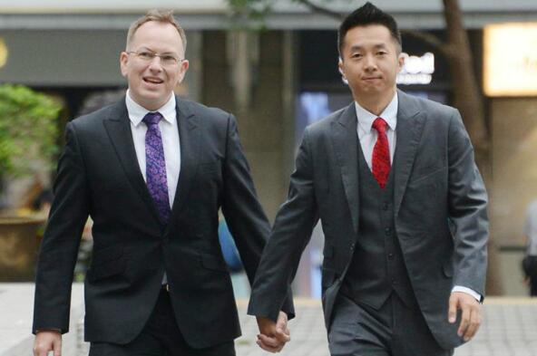 上訴人梁鎮罡(右)和其同性伴侶Scott Paul Adams。(資料圖片)