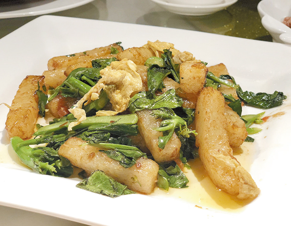 ▲「XO 醬炒菜頭粿」的菜頭粿炒過後呈金黃色,外形與普通蘿蔔糕十分相似。