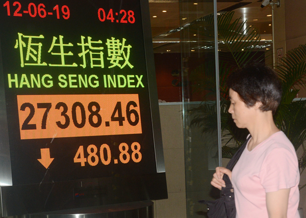 【香港商報网訊】記者吳天淇報道:香港發生暴動,中美再就貿易問題發表強硬言論,加上港元拆息急升等多項利淡因素交織,港股連升4日後顯著回吐,地產股沽壓急增。恒生指數昨低開186點後跌幅擴大,最多挫567點,低見27222點;收市報27308點,跌480點或1.73%,失守20天及250天線。有金融界人士認為,如果本港事態惡化,對金融市場有一定影響。
