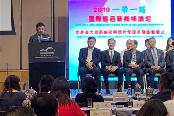 昨日,「2019一帶一路國際旅遊新商機論壇」暨「粵港澳大灣區城區明信片全球首發啟動儀式」在會展中心舉行。