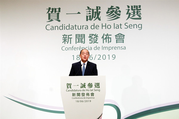 澳門特區立法會主席賀一誠今天(6月18日)上午在旅遊塔會議中心舉行新聞發布會,正式宣布參選澳門特區第五任行政長官。