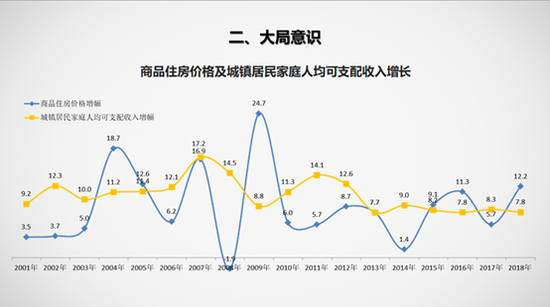 “從全國范圍來說,房價增長比居民收入慢;但是,從中心城市來說,房價增長比居民收入增長快的多得多。實際上我們中心城市的居民家庭收入增長里面有差不多50%是被房地產、房價增長吞噬了。我們名義上每年居民收入增長8%,實際上有一半是虛擬的房價增長,真正能夠用于其他支出的要少得多”。馮俊說。