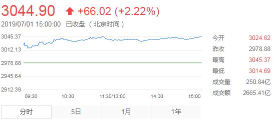 午后,三大指数继续保持早盘涨势,两市超百股涨停。截至收盘,沪指涨2.22%报3044.9点,创两个月新高,深成指涨3.84%,创业板指涨3.75%。