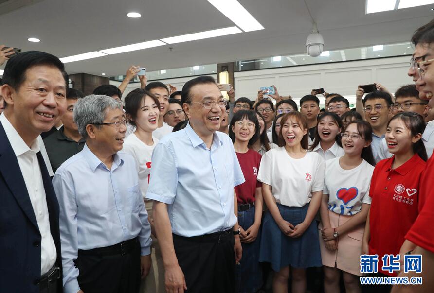 7月1日,中共中央政治局常委、国务院总理李克强在大连考察。这是李克强在大连理工大学了解毕业生就业情况。新华社