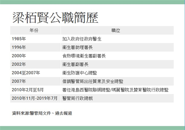 現年60歲梁栢賢,出任醫管局行政總裁9年,是歷任之人掌舵最長時間,此前他曾帶領新成立的質素及安全部。在醫管局服務達12年,入局前的公務員生涯亦有22年,梁栢賢日前舉行茶聚,與傳媒話當年,娓娓道來那些年的危機處理「戰績」。1985年他由政府醫生做起,11年後加入政府就任衞生署助理署長展開官場仕途,其後涉足食環衞生工作。