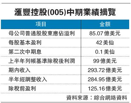 按地區劃分,亞洲繼續是盈利貢獻最大地區,期內列帳基準除稅前盈利按年升4%,北美洲盈利升逾16倍,但歐洲盈轉虧,上半年虧蝕逾5億元。按業務劃分,俗稱「炒房」的環球銀行及資本市場,上半年盈利按年減少逾17%,但其餘業務盈利均有改善。