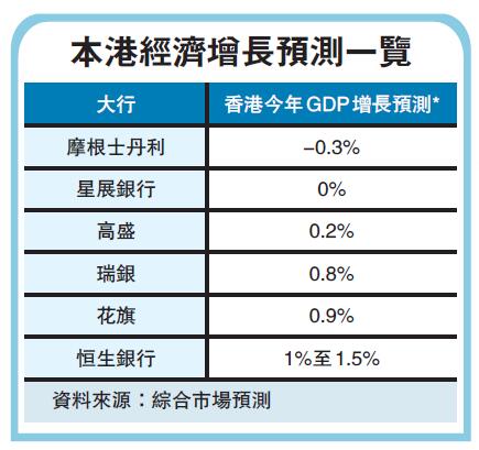 本港上季本地生產總值(GDP)按季倒退0.3%,再有大行加入吹淡風,摩根士丹利(簡稱「大摩」)調低香港今年經濟預測,將香港GDP增長預測從1%下調至負增長0.3%。該行稱,人民幣貶值、全球貿易緊張局勢和示威事件將會拖累本港消費和旅遊消費。