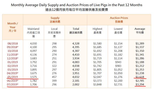 此外,每百斤均价也从5月的1618港元,升至7月的3294港元。18日,每百斤活猪最高价已经达到了4120港元。