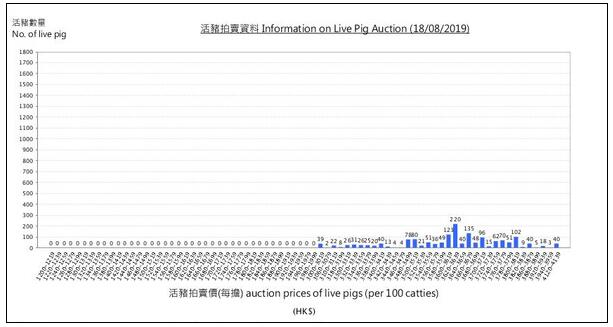 从另一张18日统计的价格分布图可以看出,活猪价格集中在3480-3819港元之间。