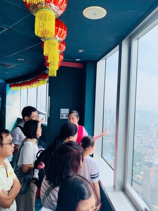 「80年代看國貿,90年代看地王。」地王大廈作為深圳的標誌性黃金建築,其頂層主題性觀光項目「深港之窗」,是中國第一個高層主題性觀光遊覽項目。與周圍的人文,自然景觀相配合,「南望香港」、「北瞰深圳」360度全方位視角俯瞰深圳、香港,將「一國兩制」的深港都市風情盡收眼底,開創了國內高層觀光的旅遊新境界。