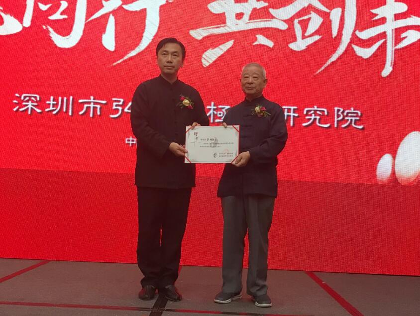 吳彬(右)被聘為「深圳弘武太極研究院」榮譽院長