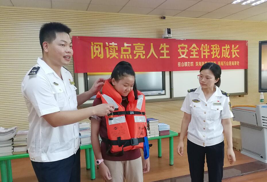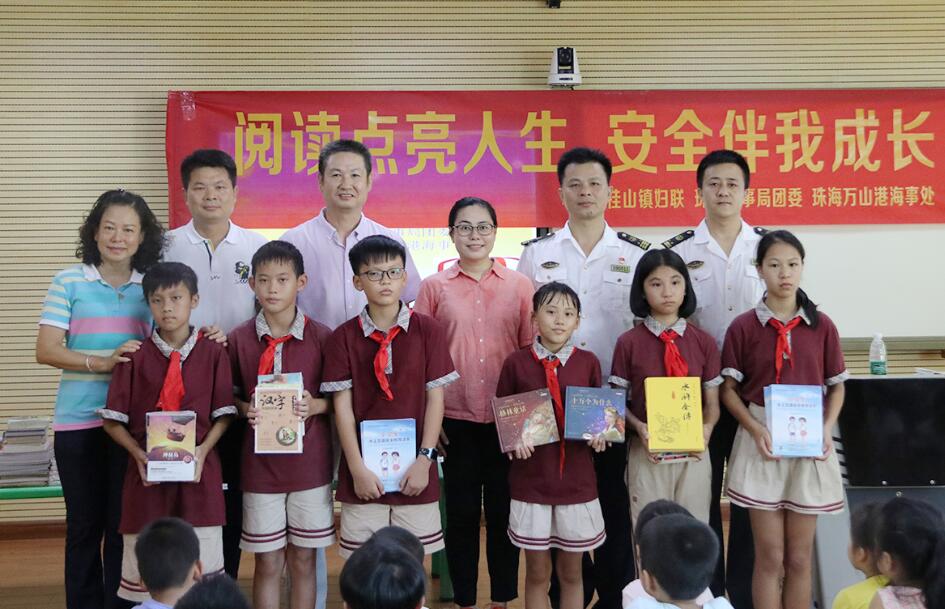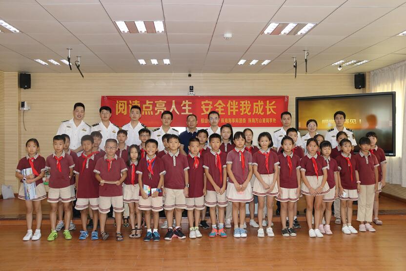 【香港商報網訊】記者陸紹龍、通訊員鄭淮傑、楊湘域報道:丹桂飄香的九月,珠海桂山島上又迎來了小學生乘船集中返校的高峰。為提高海島小學生水上安全出行和防溺水意識,同時激發學生們的閱讀興趣,9月9日下午,桂山鎮人民政府、珠海海事局團委、珠海萬山港海事處聯手走進桂山小學,為學生們送上了一堂主題為「閱讀點亮人生 安全伴我成長」的水上交通安全知識公益宣講課,並為孩子們贈送600餘本兒童閱讀書籍。
