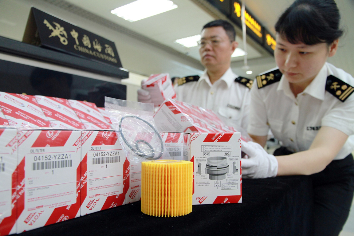 9月6日上午9時多,內地青年男子盧某拎着一捆紅白相間的紙盒進入海關監管區無申報通道,未主動接受行李物品過機檢查。在關員詢問下,盧某稱其攜帶的是汽車機油濾清器濾芯。經清點檢查,該批濾芯一共有60盒,每盒裝有一個黃色的濾芯及配件,包裝盒上有「TOYOTA」品牌標識,屬侵權物品。