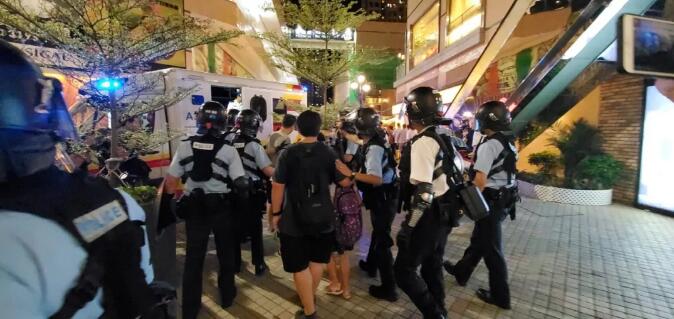 昨晚7点左右,有示威者聚集在淘大商场,高唱讽刺警察歌曲。期间一名男子带着3个小孩经过,见状高唱国歌。有示威者拍摄唱国歌的男子,该男子也举起手机反拍,之后与在场众人发生口角。
