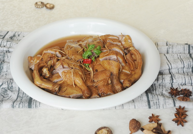 香菇浸泡信都雞,皮爽肉滑,鮮味濃厚。