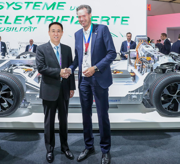 在法蘭克福車展上,許家印一行可謂馬不停蹄,先後參觀了參展的眾多世界頂級汽車工程技術公司和零部件供應商的展位:包括:Bosch與Benteler、Continental集團、ZF集團(采埃孚)、EDAG(愛達克)、Webasto集團(偉巴斯特)、Mahle(馬勒),並與眾多這些集團眾多高管舉行會談。