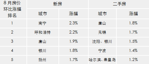 31個二線城市新房同比上漲9.9%,漲幅比7月回落0.8個百分點;二手房價格同比上漲5.5%,漲幅比7月回落1.2個百分點。