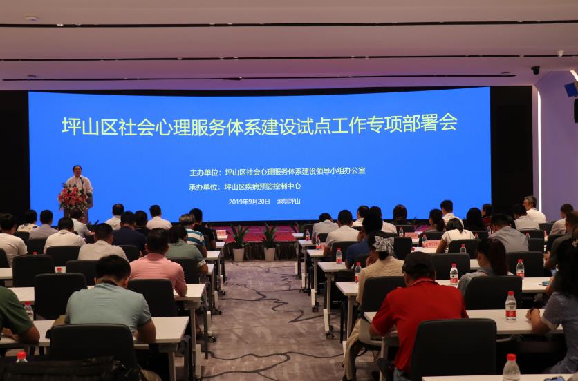 【香港商報訊】記者焦家志、常亮報道: 9月20日上午,深圳市坪山區社會心理服務體系建設試點工作專項部署會和培訓會在坪山創新廣場隆重召開。國家衞健委人口文化發展中心國民心理健康網理事長張曼琳,深圳市精神衞生中心主任、康寧醫院院長劉鐵榜、坪山區委政法委常務副書記葉華明、副書記彭騰龍,區衞健局副局長陳景傑,區疾控中心主任吳能簡等領導和嘉賓到場。坪山區委政法委、區衞健局、區委組織部、區委宣傳部、區教育局、區民政局、區司法局、區政數局、區財政局、區人力資源局、區信訪局、區群團工作部、坪山公安分局、區法院、區檢察院及各街道辦事處相關負責人,以及志願投身於坪山社會心理服務體系建設的從業人員、媒體代表等100多人參加會議。