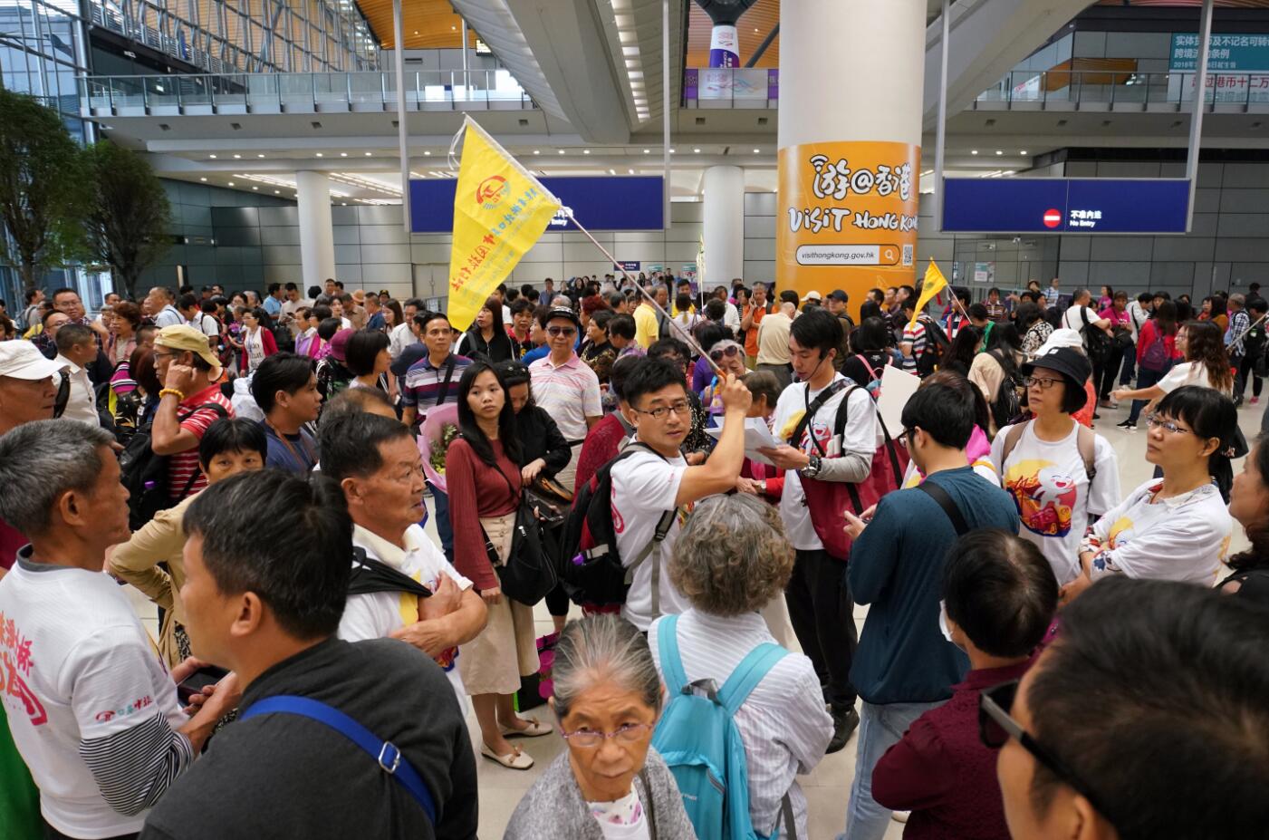 9 月份首兩周訪港內地團跌近九成。圖為內地遊 客通過港珠澳大橋抵港。