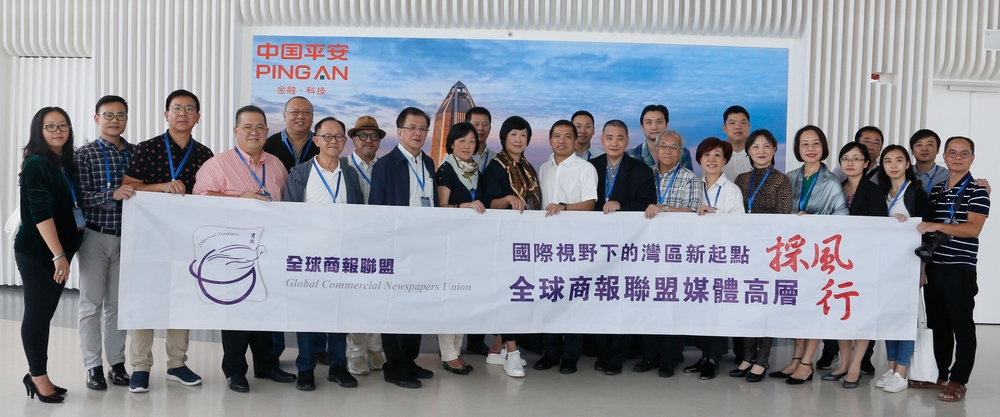 全球商報聯盟媒體高層採風團在深圳平安金融中心合影。