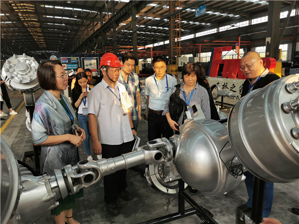 離開台山市富通達軟包裝材料科技有限公司,一行人馬不停蹄前往臨近的廣東富華重工製造有限公司,一探江門汽車製造業發展情況。據廣東富華重工製造有限公司驅動橋1車間副總經理徐明介紹,自2007年富華集團斥巨資興建廣東富華重工製造有限公司,打造富華集團卡車及半掛車零部件生產研發基地以來,廠內已擁有12個大型生產車間,總佔地面積達100萬平方米。