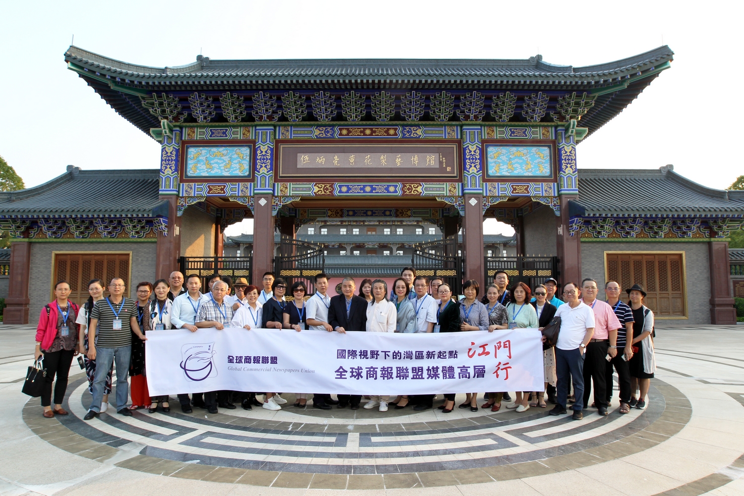 全球商報聯盟媒體高層採風團一行在伍炳亮黃花梨藝術博物館合影。