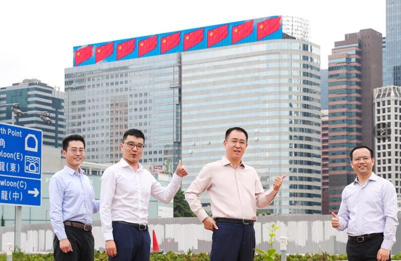 许家印检查恒大香港总部大楼五星红旗飘扬的展示效果