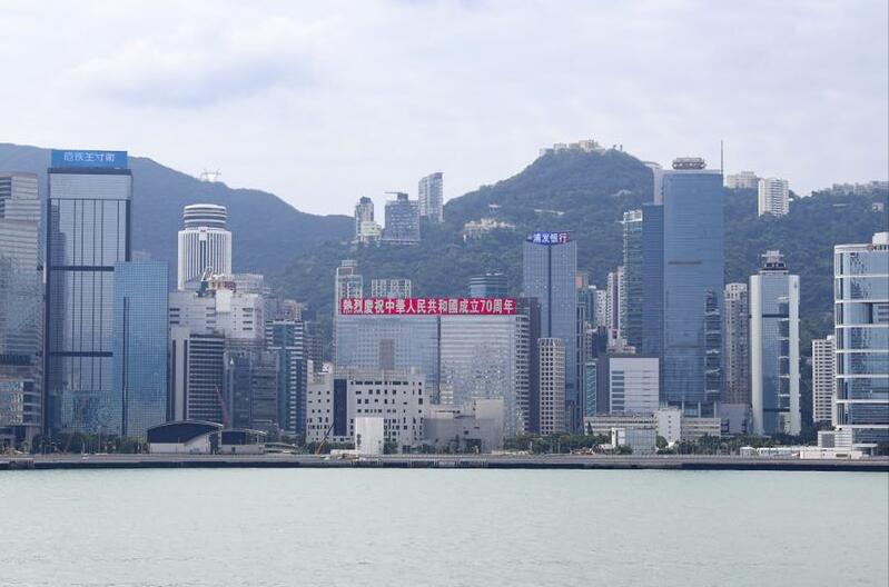 恒大香港总部大楼打出国庆庆祝标语