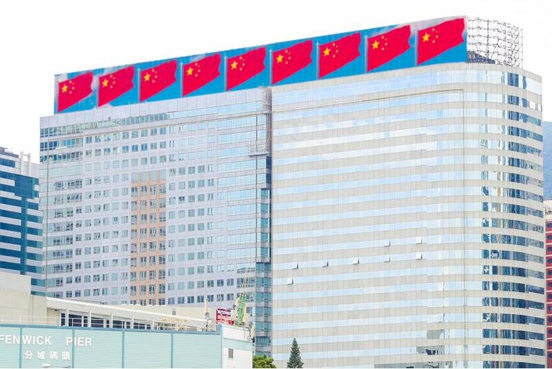 恒大香港总部大楼五星红旗飘扬