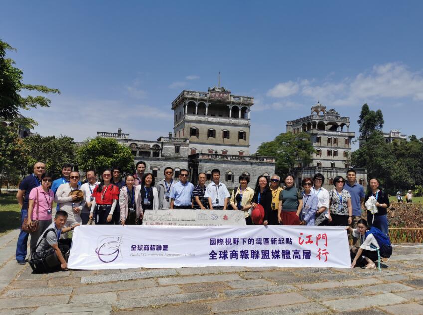全球商報聯盟媒體高層在世界文化遺產開平碉樓前合影