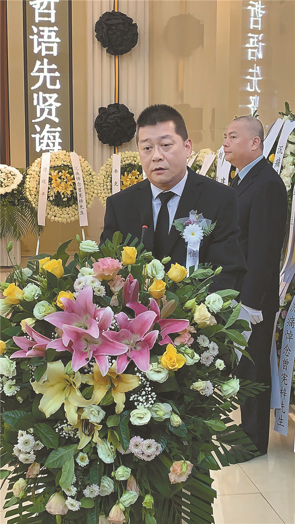 曾氏三兄弟--曾智謀、曾智雄、曾智明攜其夫人,及曾憲梓的孫子孫女參加告別儀式。曾憲梓三子曾智明代表家屬致答謝詞,並在現場含淚唱起了曾憲梓最愛唱的《沒有共產黨就沒有新中國》,以此告別父親。