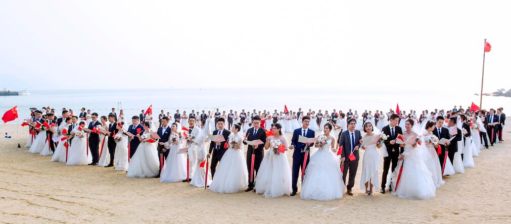 【香港商報網訊】記者陸紹龍報導:9月28日,珠海萬山海洋開發試驗區舉辦的“心系祖國、愛在珠海、情定萬山”2019首屆海洋婚典在萬山群島東澳島盛大舉行。來自港澳臺和內地不同城市的70對新人在浪漫秀麗的東澳島沙灘上,攜手開啟幸福人生,以特殊的方式慶祝中華人民共和國成立70周年,向祖國獻上深深的祝福。