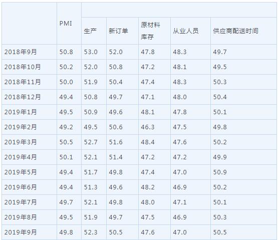 2019年9月份,中国制造业采购经理指数(PMI)为49.8%,比上月回升0.3个百分点。