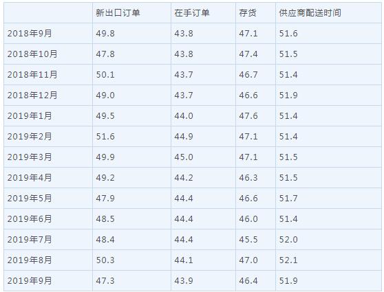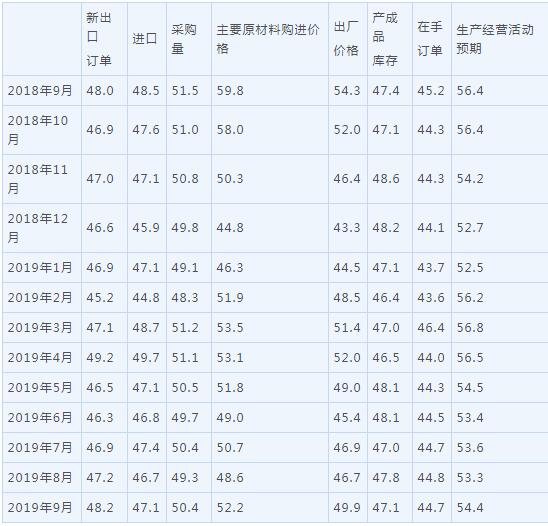 2019年9月中国采购经理指数运行情况